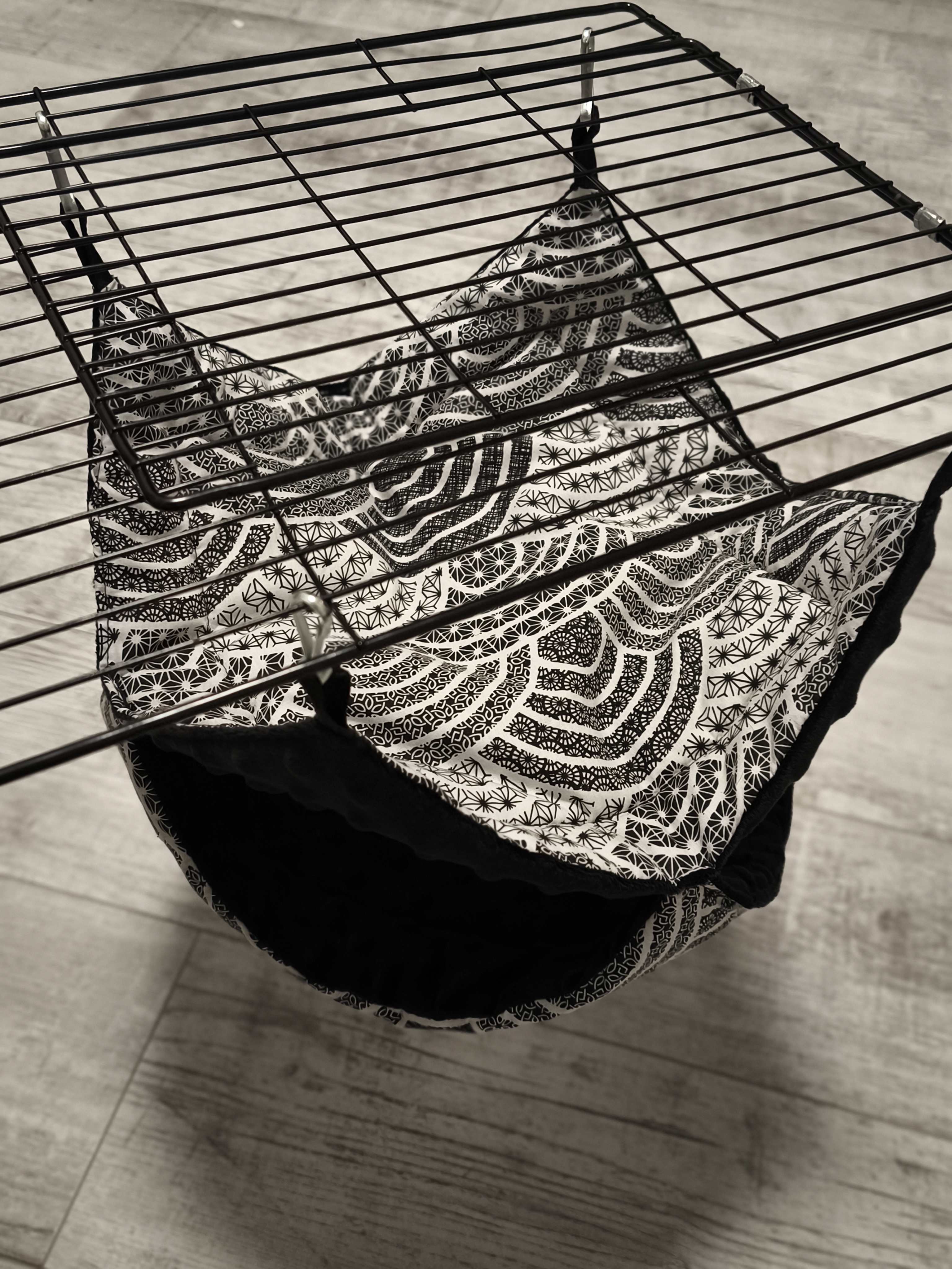 Zdjęcia podglądowe hamaka powieszonego w klatce.