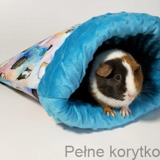 Norka , śpiworek, usztywniany, wodoodporny, duży ( świnki morskie tęczowe z niebieskim)