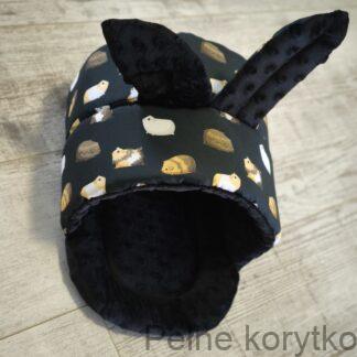 Domek , budka, kapeć z uszami ( czarne świnki morskie )