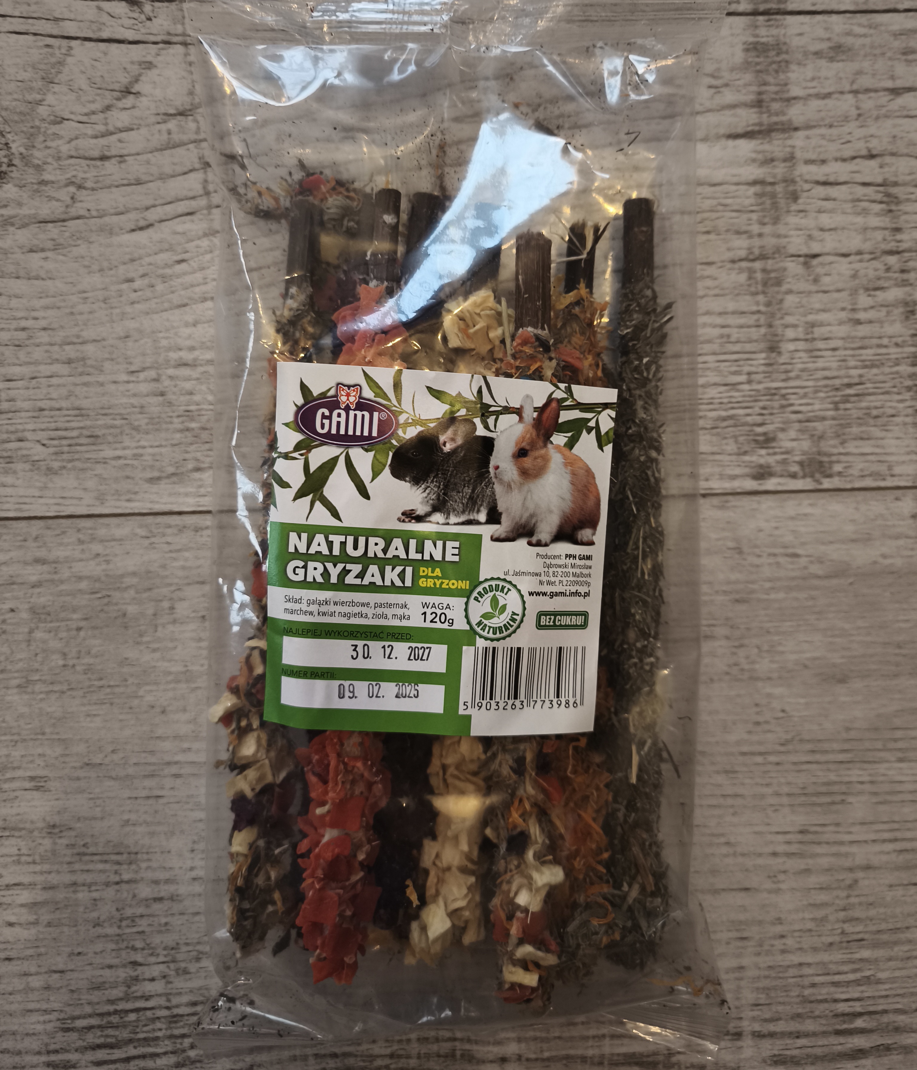 ilość Naturalne gryzaki, Gałązki wierzbowe w ziołach i warzywach dla gryzoni i królików GAMI 120g